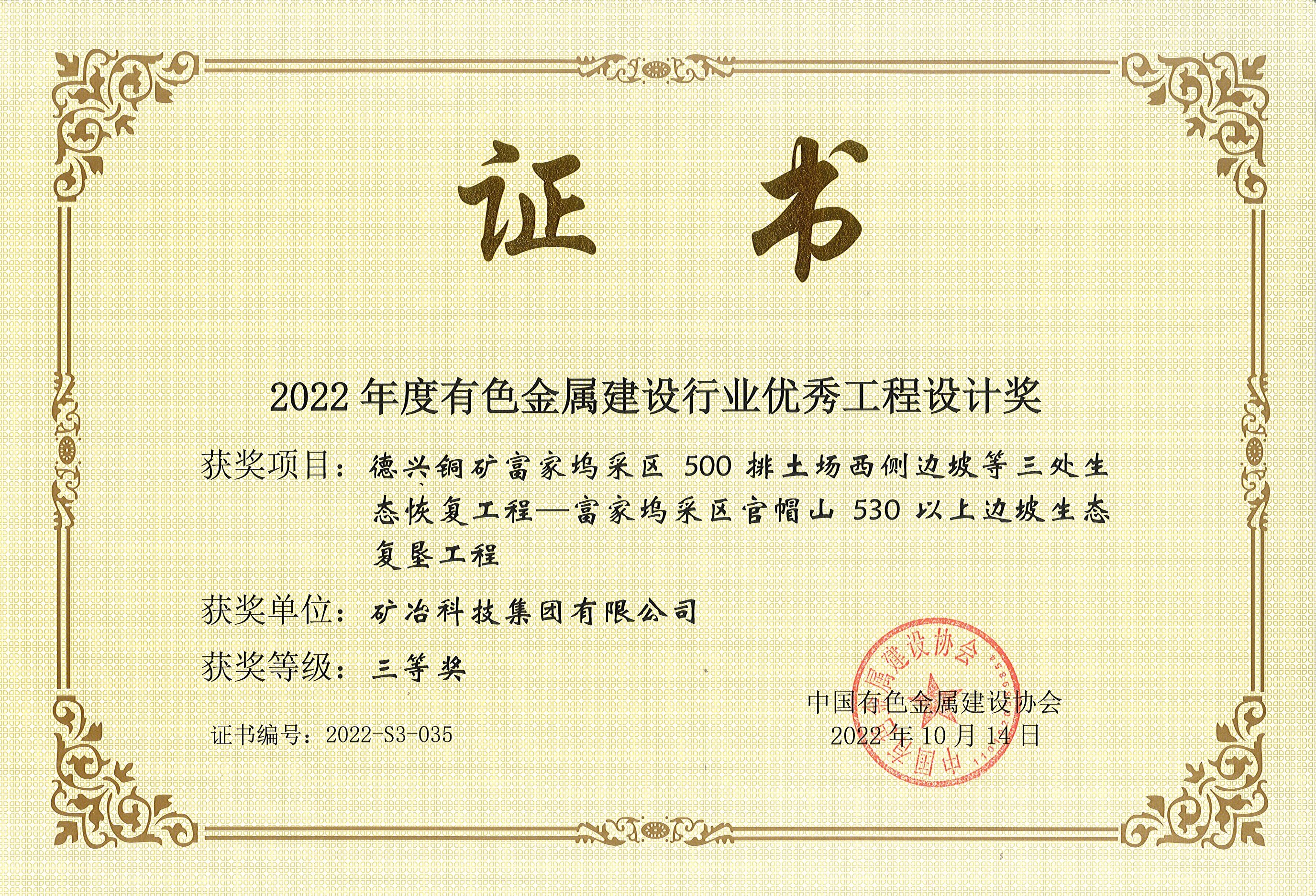 德兴铜矿富家坞采区500排土场西侧边坡等三处生态恢复工程—富家坞采区官帽山530以上边坡生态复垦工程