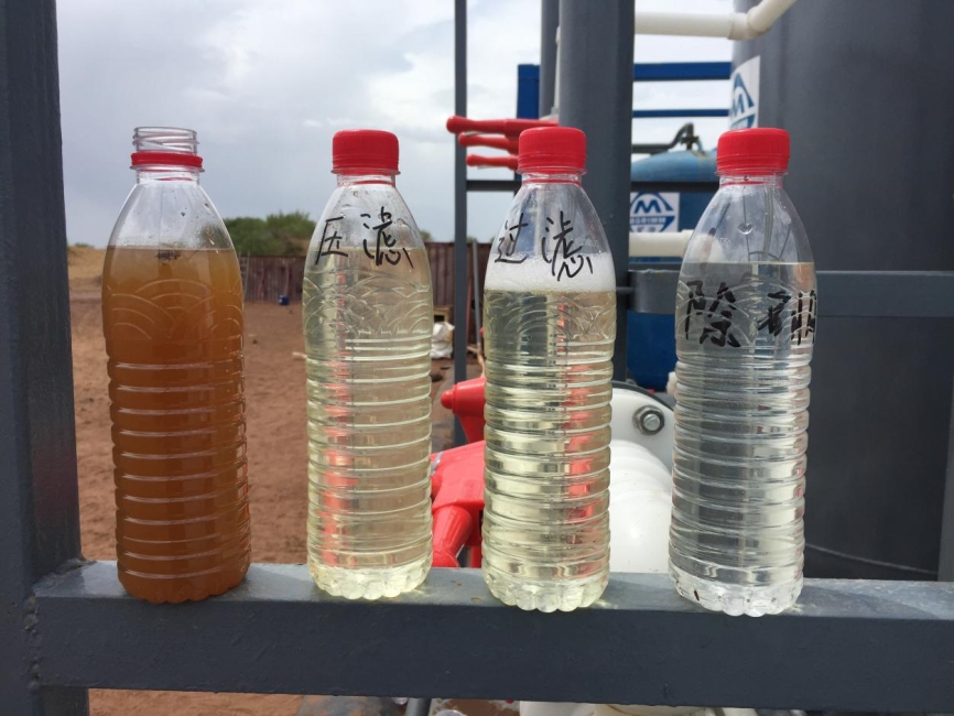 乌审旗返排液处理项目采用撬装式处理装置,防爆防腐,模块化设计,厂内组装调试,现场占地面积小,快速安装调试并投用。该项目由矿冶集团提供处理设备、人员、药剂等,在内蒙乌审旗压裂作业现场进行压裂返排液及酸化压裂返排液的现场处理服务,处理量≥400m³/d,处理后全部用于回用(重复配制压裂液),得到业主方的认可及好评。